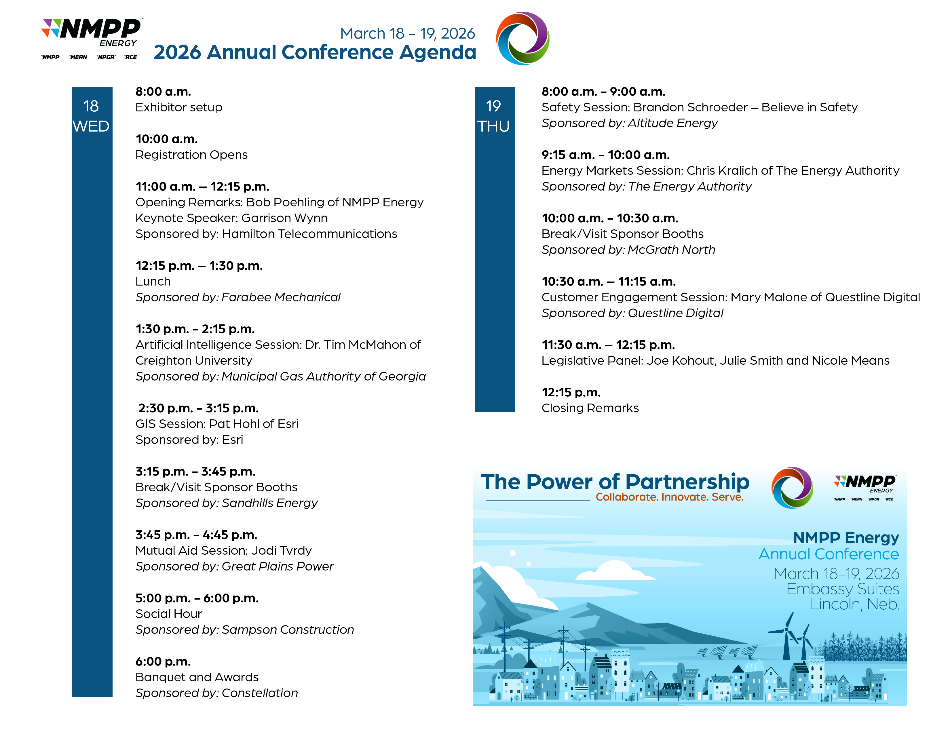 Thank you to our 2026 NMPP Energy Annual Conference sponsors. We appreciate their support of the Conference and NMPP Energy!